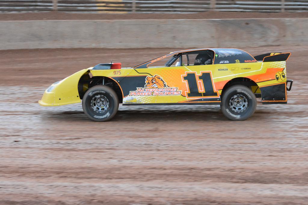 Joe Martin advanced to the lead on the opening lap via the outside pole. But by lap 2, Norris already closed from the 5th starting position and took the lead away on the inside of Martin. Norris quickly stretched the lead, while Martin slid high off turn 2 on lap 4, handing the runner up spot to Mike Pegher Jr. A lap 5 caution for Jim Rasey slowed the early pace. On the restart, Matt Lux charged low by both Norris and Pegher to momentarily take the lead going down the backstretch. Norris was able to cross back over to lead lap 6 at the flagstand before another caution was displayed.