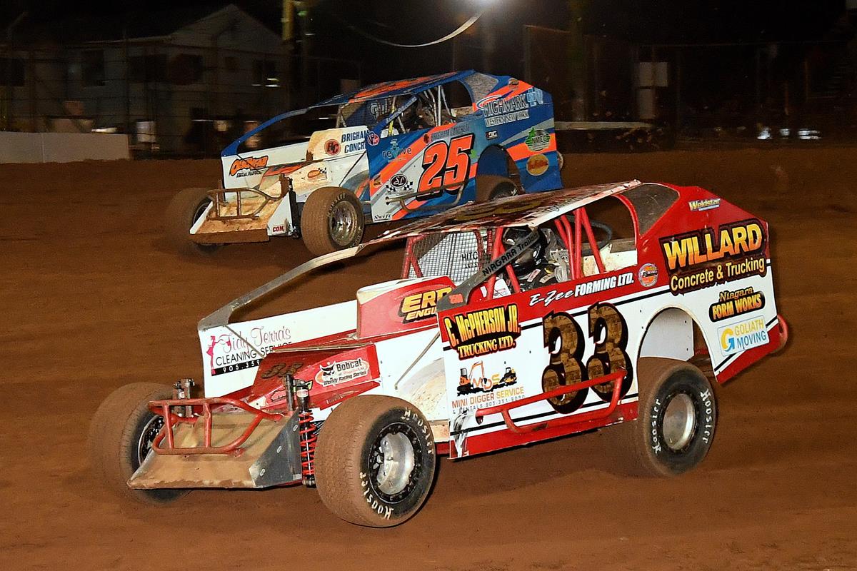 Lernerville regular Colton Walters and Tom Glenn led the BRP/Diehl Automotive Modifieds to the green for their 35-lap, $2,500 to-win main event with Glenn taking the early lead after Walters slipped back to the sixth spot in the running order. After a quick lap 2 caution, Rex King, Jr., made his way by Glenn to take command with Tyler Willard also getting by Glenn for the second spot. With King, Jr. at the helm, Willard, last weeks Fab4 winner Dave Murdick and Brad Rapp all battled for the third spot until Rapp, making a bid on the outside of the backstretch, slipped off the racing surface and came to a stop in turn three to bring out the caution on lap 6. On the ensuing restart, Willard got by King, Jr., for the lead as King Jr., jumped the cushion in turns three and four and fell back to the fourth position. While King Jr., tried to regroup, seventh starting Eric Rudolph found himself in the second spot and began to pressure Willard for the race lead. On lap 11, Rudolph was able to power his way to the lead using the bottom side of the speedway and begin to put some distance between himself and the rest of the field. Once in the lead, Rudolph jumped to the top line to set the pace for the remainder of the race to take home his first BRP Tour win of the year. After a strong late race charge, ninth starting Brian Swartzlander finished second followed by Garrett Krummert in third, Rex King Jr., in fourth and Brad Rapp rallied for a fifth-place finish.