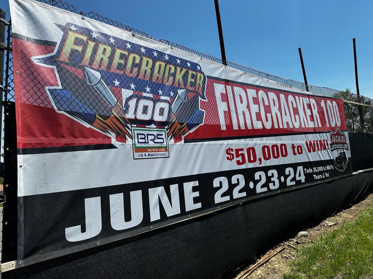 Sarver, PA (May 24, 2023) We are now less than a month away from one of the most anticipated weekend's of the year in our area as the 17th Annual Firecracker 100 presented by Big River Steel moves closer to taking over The Action Track June 22-24! The stars of the Lucas Oil Late Model Dirt Series return to take on the best from the area and beyond with three straight nights of racing with complete racing programs on June 22 and 23 featuring twin $5,000-to-win feature races and on Saturday, June 24, another complete night of racing culminating in the $50,000-to-win, 100-lap Firecracker 100.